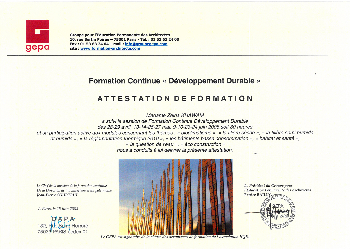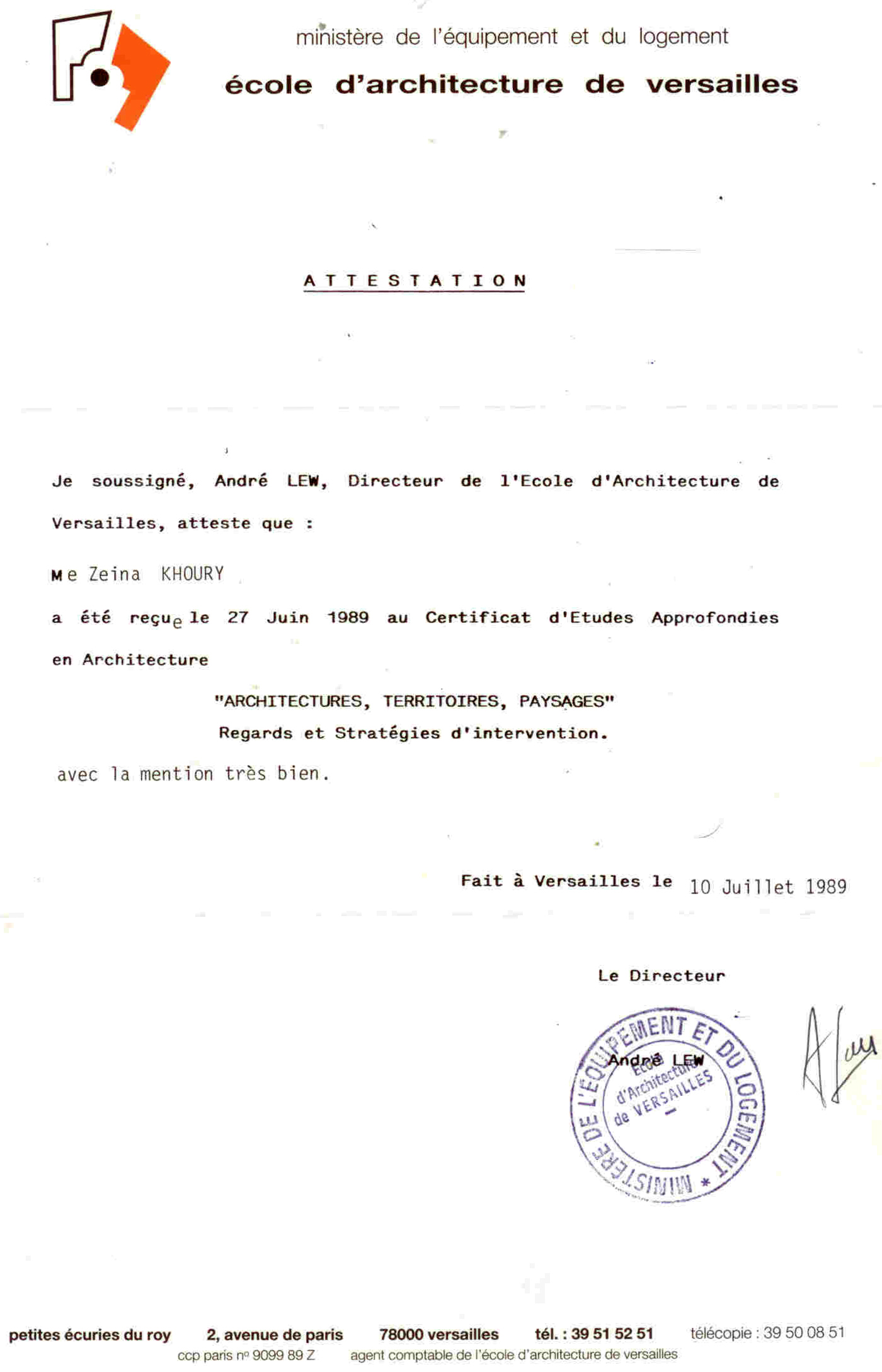 Diplôme de l'Ecole d'Architecture de Versailles |